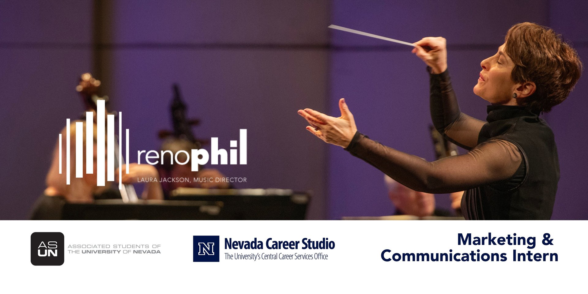 After this, I will head in a couple different directions. I intend to continue growing my graphic design and marketing business, with a strong focus on supporting non-profit organizations. I will also use the skills and experience I’ve gained here to pursue additional internships, potentially returning to the Reno Phil in the future. With three years remaining until graduation, I look forward to exploring more internship opportunities at UNR as well as working toward more permanent positions.